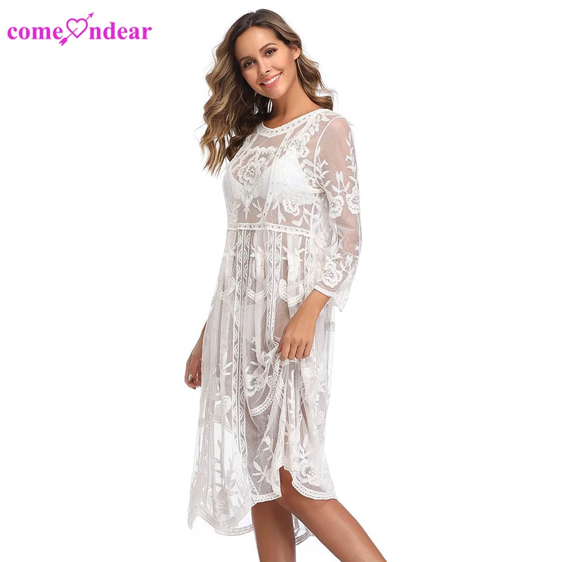 Delicate White Chiffon Sheer Embroidery Women Maxi Beach Dress Cover Up - Buy Beach Dress,Beach ...