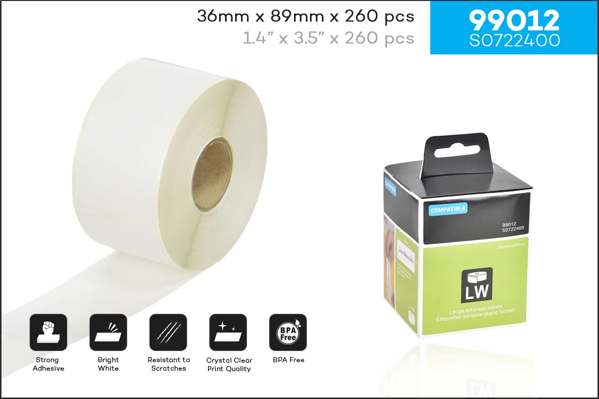 For Dymo 99018 Compatible Labels,190mm X 38mm,110 Labels,White,Permanent - Buy For Dymo 99018 ...