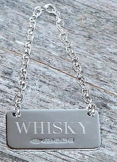Solid Silver Decanter Label | Edinburgh Silver Price: £49.99 IN STOCK Description Solid Silver Hallmarked Whisky Noggin (small) Decanter Label. This small Noggin decanter label is made for a Whisky Noggin Decanter only. Made by Broadway Silver Birmingham 2008. This sterling silver handmade hallmarked Noggin decanter label has the traditional shape and is engraved Whisky.
