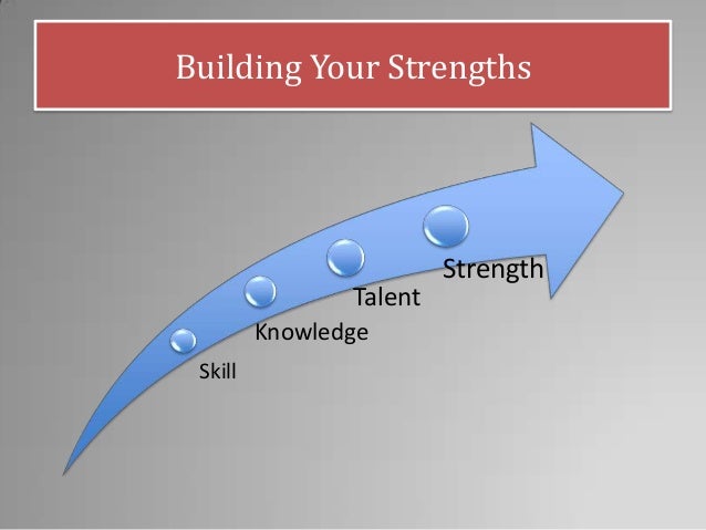 Leading With Your Strengths - Crash Course in Gallup StrengthsFinder Satisfaction What kinds of activities give you energy and a sense of passion? 13. Building Your Strengths Skill Talent Knowledge Strength 14. Barrier Labels labels undercut and unfairly judge a strength.Credit 15. Why Strengths? Photo Photo Photo Photo 16.