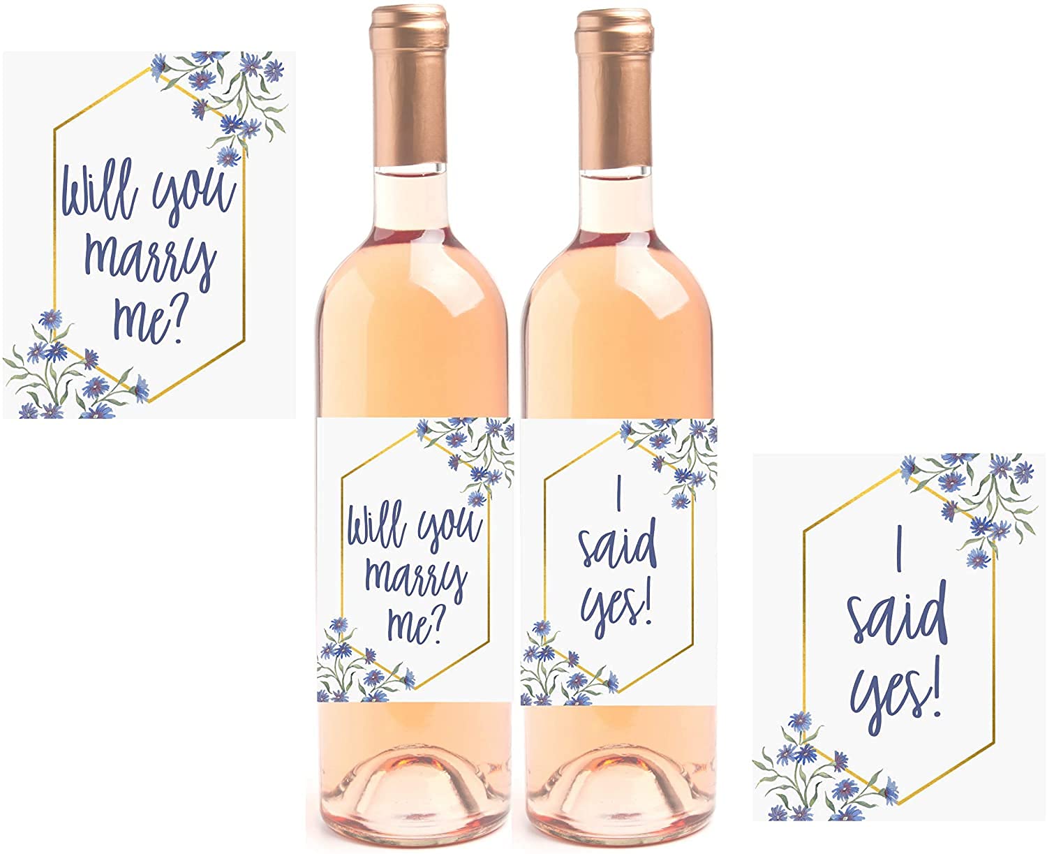 Proposal Wine Bottle Labels, Will You Marry Me + I Said Yes Set of 2 Wine Labels Engagement Idea - Floral, Romantic Marriage Proposal Decoration ...