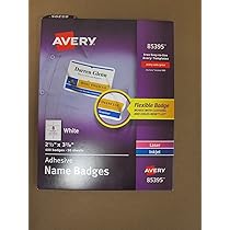 Avery Adhesive Laser/Inkjet Name Badges, 2 1/3" x 3 3/8", White, 400 … Get Avery Adhesive Laser/Inkjet Name Badges, 2 1/3" x 3 3/8", White, 400 Labels Per Pack (5395) ... these premium name tag labels are easy to separate from the printed label sheet while the individual label backing remains intact until it's ready to use, saving you tons of time when preparing for events. ...